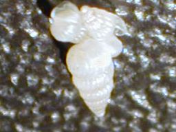 Picture taken October 1999 By Jim Fox with Nikon CoolPix 950 This is the last thing you ever want to see crawling on your clam shells. They can be difficult to spot. I find them mainly at night or early morning. You can usually find them just under the fleshy mantal on the growth ring on the clam. These snails can produce several hundred off-spring a week. In large numbers these snail can kill a clam. |
